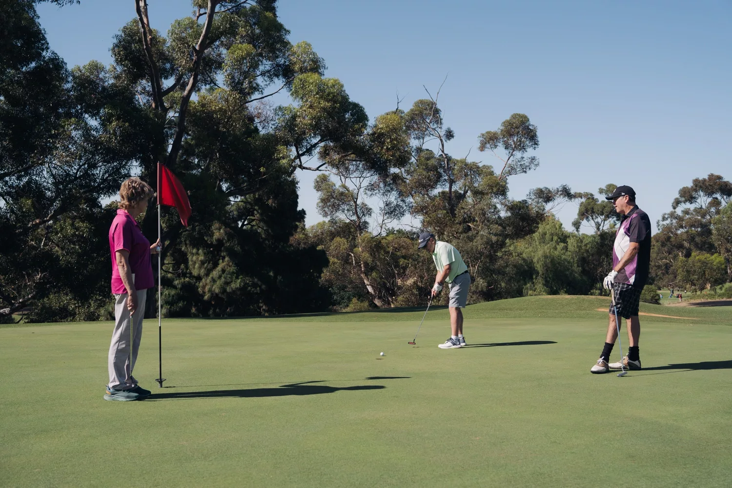Our state-of-the-art putting greens are both dense and durable. The green offers well-spaced pins for variable distances , so you can go from practicing your half metres sinks to lining up 5m putts, all on the same green.